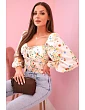 Dámska španielska blúzka s kvetinovým vzorom, dlhý rukáv, béžová