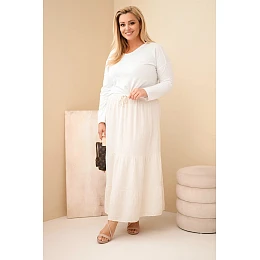 Dámská sukně Plus Size bavlněná mušelínová s volánem a gumou béžová