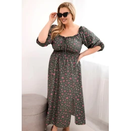 Tieto romantické dámske maxi šaty s drobným kvetinovým vzorom sú dokonalou ponukou na jar a leto! Majú ženský výstrih so šnúrkou, ktorý sa dá upraviť, a elastický pás, ktorý zvýrazňuje siluetu. Rukávy s balónovým efektom v dĺžke po lakte dodávajú ľahkosť a jemný pôvab. Voľný, ľahký materiál zaručuje pohodlie počas celého dňa a vďaka maxi dĺžke sa šaty skvele hodia na denné nosenie aj na špeciálne príležitosti, ako sú záhradné párty, dovolenky alebo rodinné oslavy.