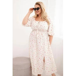 Tieto romantické dámske maxi šaty s drobným kvetinovým vzorom sú dokonalou ponukou na jar a leto! Majú ženský výstrih so šnúrkou, ktorý sa dá upraviť, a elastický pás, ktorý zvýrazňuje siluetu. Rukávy s balónovým efektom v dĺžke po lakte dodávajú ľahkosť a jemný pôvab. Voľný, ľahký materiál zaručuje pohodlie počas celého dňa a vďaka maxi dĺžke sa šaty skvele hodia na denné nosenie aj na špeciálne príležitosti, ako sú záhradné párty, dovolenky alebo rodinné oslavy.