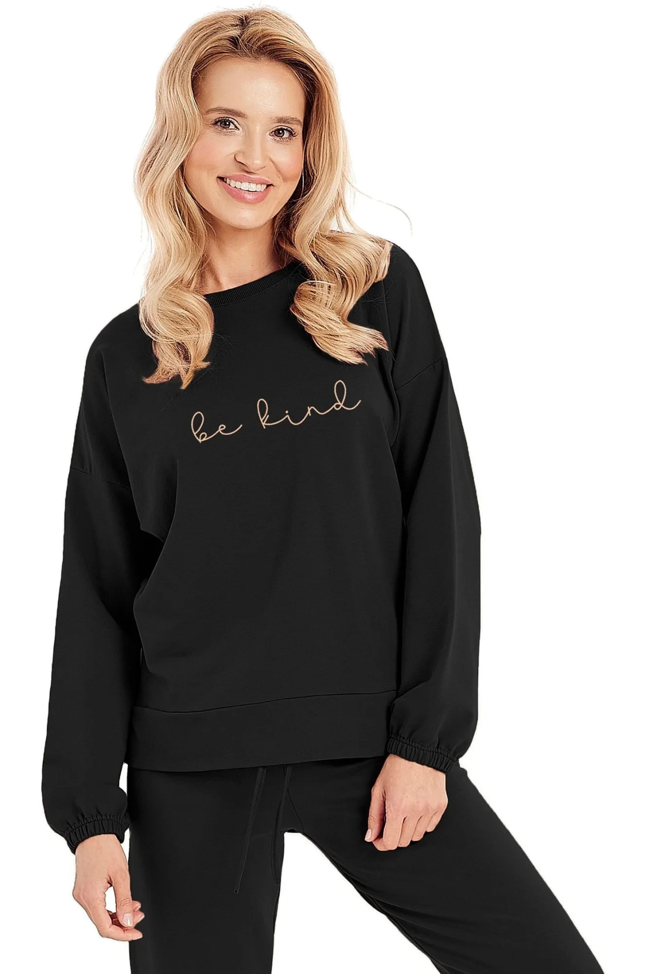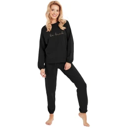 Dámska súprava 3004 Lia TARO - vyrobená z kvalitnej a mäkkej bavlny - mikina je čierna s dlhými rukávmi - zdobená potlačou na prednej strane - dlhé nohavice sú čierne - ukončené lemom na šnúrku Zloženie materiálu: 95% bavlna + 5% elastan