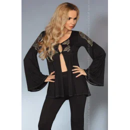 Dámsky komplet Aruna Livia - z príjemného materiálu, ktorý sa skvelo prispôsobí Vášmu telu - horný diel s dlhými rukávmi, je ozdobený výšivkami - nohavice majú v páse všitú gumu - komplet vyzerá romanticky a zároveň luxusne