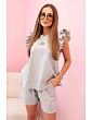 Dámska súprava s volánom - blúzka s krátkym rukávom a šortky s gumičkou Grey melier