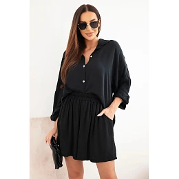 Dámska súprava z viskózy: košeľa s gombíkmi a voľné šortky čierna