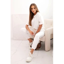 Dámska súprava z viskózy s krátkymi rukávmi a nohavicami ecru