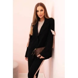 Dámska súprava z viskózy - sako s klopami a nohavice s lamelami čierne