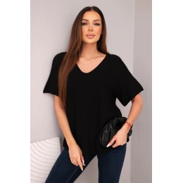 Dámská svetr s krátkým rukávem a výstřihem do V černá