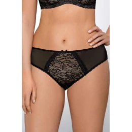 Dámske tangá 1396 Crystal black AVA - čierne - predné vložky z čipky a sieťoviny - zadná časť je z hladkej tkaniny - zakončené elastickou pogumovanou čipkou - zdobené pôvabnou saténovou mašľou Zloženie materiálu: 91% polyamid + 5% bavlna + 4% elastan