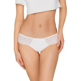 Dámske tangá 158 Babell - z veľmi kvalitného a jemného mikrovlákna - biela farba - zdobené efektnou čipkou s kvetinovým motívom - vnútorná časť nohavičiek je podšitá bavlnenou látkou