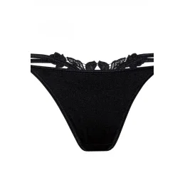 Dámská tanga Agnez black ROZA - černá barva - přední část hladká - zadní část z elastického pásku ozdobené krajkovou aplikací