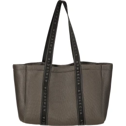 Dlouhá tkaná ucha s nápisem „ATHLECIA“ umožňují pohodlné nošení jak v ruce, tak přes rameno.