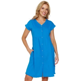 Dámske tehotenské tričko 9600 modré Doctornap - svetlomodré - vyrobené z kvalitnej a príjemnej organickej bavlny - krátke rukávy - zakončené volánmi - zapínanie na gombíky - ideálne pre tehotné a dojčiace ženy - vrecká na bokoch - certifikát OEKO-TEX Standard 100