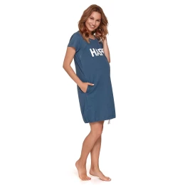 Dámská těhotenská košile 9504 deep blue Doctornap - tmavě modrá barva - z vysoce jakostní bavlny - s krátkými rukávy - zdobená potiskem na přední straně - na bocích kapsy - ideální pro těhotné a kojící ženy - hypoalergenní vlastnosti - certifikát OEKO-TEX Standard 100