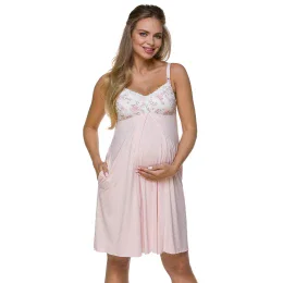 Dámska tehotenská nočná košeľa 3122 Light Pink with White - LupoLine