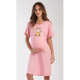 Dámska bavlnená tehotenská nočná košeľa Malá žirafa. Strih nočnej košele je určený na tehotenstvo, materstvo a dojčenie. Na dojčenie sú na bokoch košele rozparky, ktoré sa dajú zapnúť na gombíky. Prednú stranu košele zdobí obrázok malej žirafy a nápis "You are awesome" (Si úžasná). Použitý materiál so 100 % bavlnou je príjemný a pružný na dotyk.
