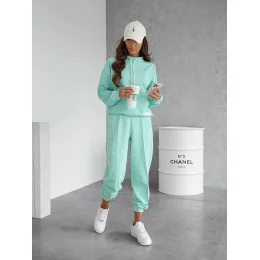 Dámska tepláková súprava v mätovej farbe - mikina so stojačikom a nohavice (82162)
