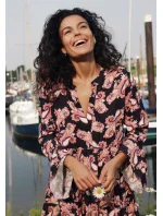 Dámske šaty Lingadore z novej kolekcie jar/leto 2022. Plážové šaty majú kratšiu dĺžku, výstrih do V a sú prestrihnuté pod hrudníkom.