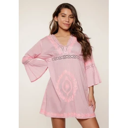 Tunika značky LingaDore je ideálnou voľbou pre uvoľnený a štýlový vzhľad. Tento boho model je vyrobený zo 100 % bavlny, čo zaručuje pohodlie počas celého dňa. Má výstrih do V a rozšírené rukávy, ktoré jej dodávajú ľahkosť a vzdušnosť. Detaily prešívania zvýrazňujú jej jedinečný dizajn. Tunika je ideálna ako ľahké šaty cez plavky, takže je skvelou voľbou na relax pri vode, na pláži alebo pri bazéne. Vďaka svojej všestrannosti je ideálna aj na farebný, ležérny vzhľad počas teplých letných dní.