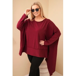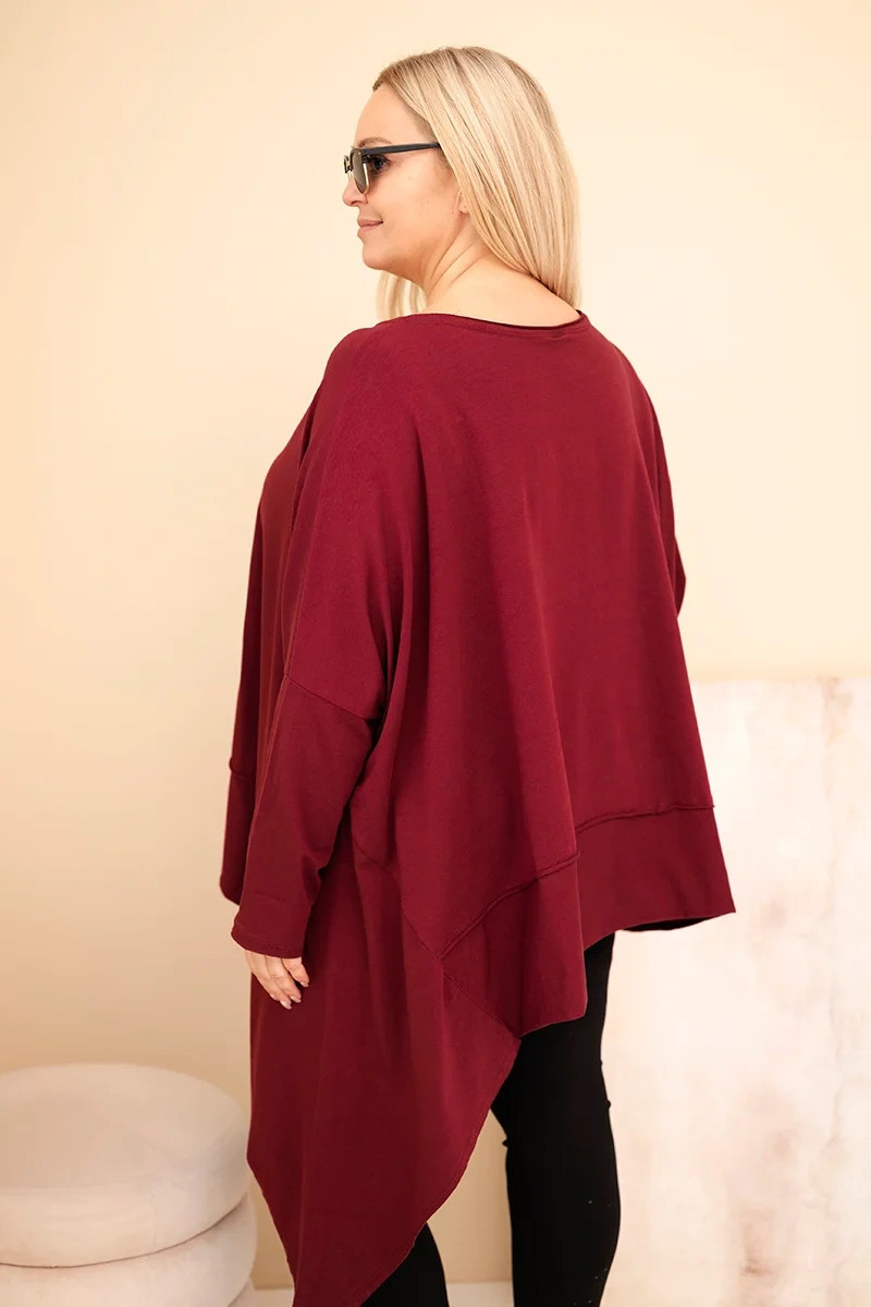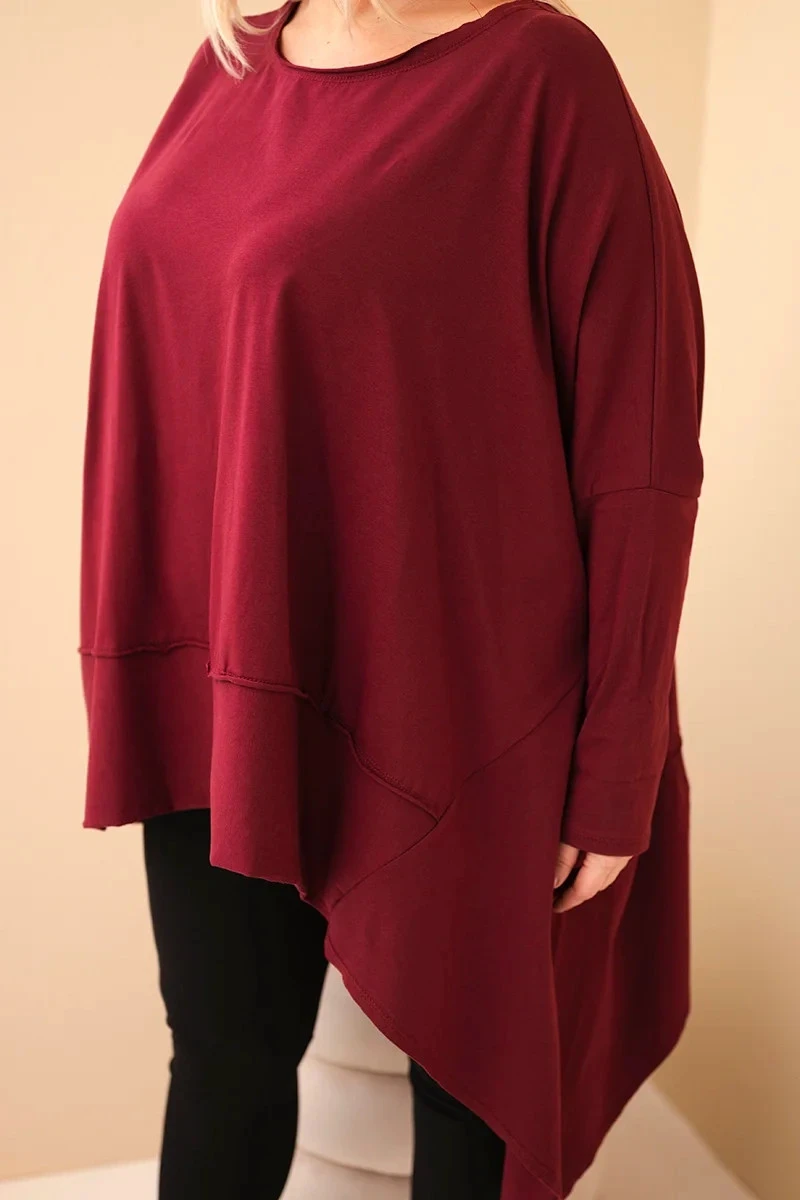 Dámská tunika Plus Size z bavlny s asymetrickým spodním lemem bordová