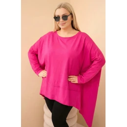 Dámská tunika Plus Size z bavlny s asymetrickým spodním lemem fuchsie