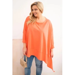 Dámske Plus veľkosť bavlnená tunika s asymetrickým lemom marhuľová