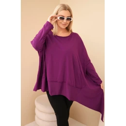 Dámská tunika Plus Size z bavlny s asymetrickým spodním lemem tmavě fialová