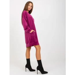 Fialové voľné velúrové šaty s vreckami RUE PARIS .