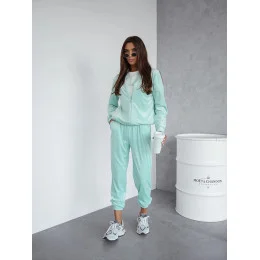 Dámska velúrová súprava s mikinou na zips mentolová (768)