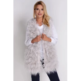Velmi teplá vesta, která nesmí chybět ve vašem šatníku. Budete se v ní cítit módně a vkusně. Ušitá je z umělé kožešiny s dlouhým vlasem. Výstřih je do V. Vpředu se zapíná na háčky. Vesta zajišťuje dokonalý vzhled a dokonalé pohodlí.