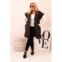 • Dámská vesta Plus Size prošívaná s páskem a límcem hnědá
