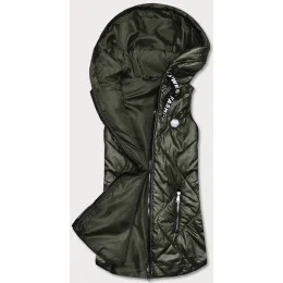 Dámska vesta v khaki farbe s kapucňou (B0129-11)