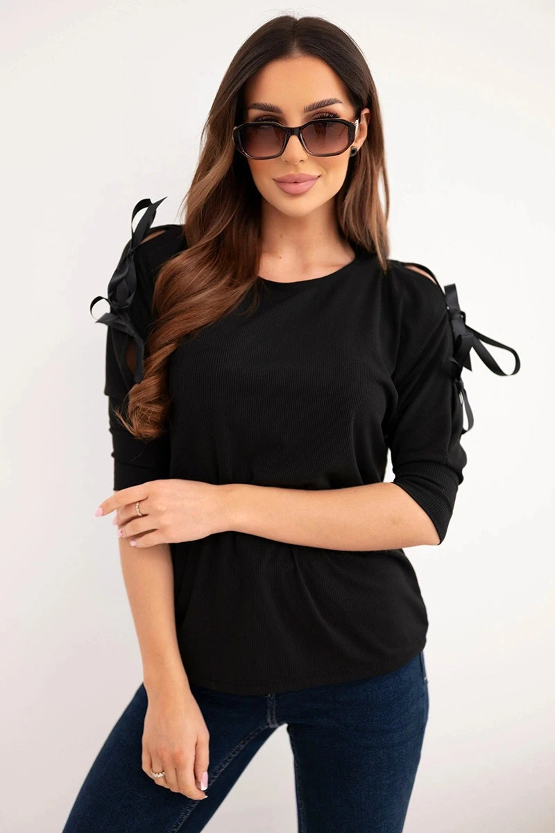 Dámska viskózna blúzka s ozdobnými stuhami čierna
