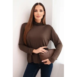 Dámska viskózna blúzka s rolákom a dlhými rukávmi hnedá