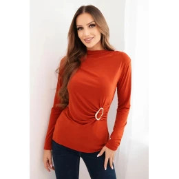 Dámska viskózna blúzka s volánom a ozdobnou sponou hnedá