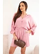 Voľné tričko má klasický golier a rukávy s možnosťou vyhrnutia, čo mu dodáva univerzálny charakter. Šortky s elastickým pásom sa dokonale prispôsobia postave a neobmedzujú v pohybe. Táto dámska súprava je vhodná na bežné nosenie, ako aj na dovolenku, prechádzky alebo stretnutia s priateľmi. Môžete ju nosiť ako celok alebo jednotlivé časti kombinovať samostatne a vytvárať tak rôzne štylizácie.