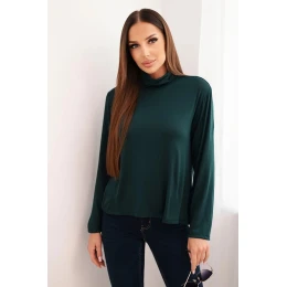 Dámska viskózna blúzka s rolákom a dlhými rukávmi tmavozelená