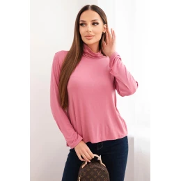 Dámská viskózová halenka s rolákem a dlouhým rukávem tmavě růžová