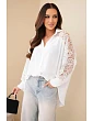 Dámske viskózové tričko s čipkovanými rukávmi a golierom biele