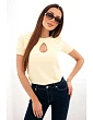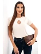 Dámska viskózna rebrovaná blúzka s ozdobným výstrihom biela