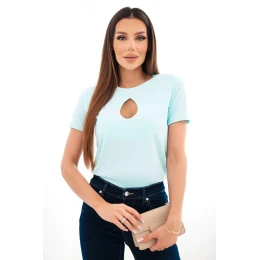 Dámska viskózna rebrovaná blúzka s ozdobným výstrihom mätová