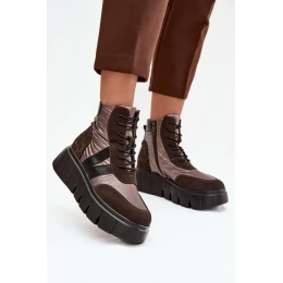 Dámska zateplená členková obuv na platforme 58562 Hnedý vzor - Vinceza