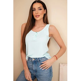 Dámska rebrovaná blúzka s ramienkami a mätovým gombíkom