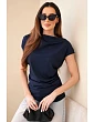 Dámska rebrovaná blúzka z viskózy s vodopádovým výstrihom a volánmi tmavomodrá