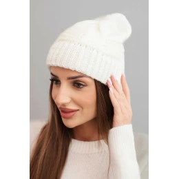 Dámska zimná akrylová čiapka s ozdobným úpletom K462 ecru