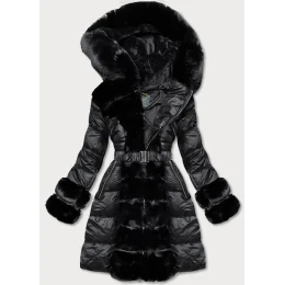 Dámska zimná bunda s ozdobnou kožušinou čierna (7729)
