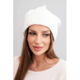 Dámska zimná čiapka s ušami a rebrovaným vzorom K440 biela