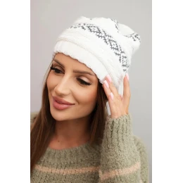 Dámska zimná čiapka so vzorom a vlnou K425 biela