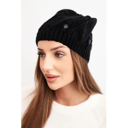 Dámska zimná čiapka z vlny s ozdobnými kryštálmi K461 čierna