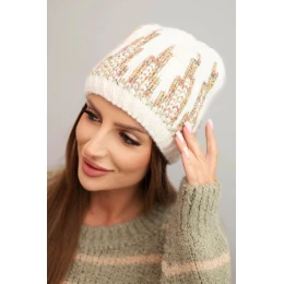 Dámska zimná pletená čiapka s ozdobným vzorom K454 ecru + zelená