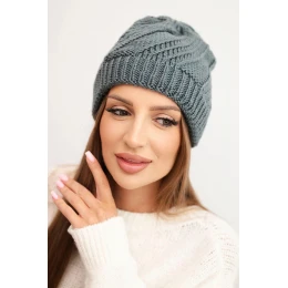 Teplá a pružná dámska čiapka s klasickým úpletom a prehnutým okrajom. Skvelá na chladné dni - vhodná na mestský styling aj zimné prechádzky. Univerzálny strih sa hodí pre mnohé typy krásy a tvary tváre.
